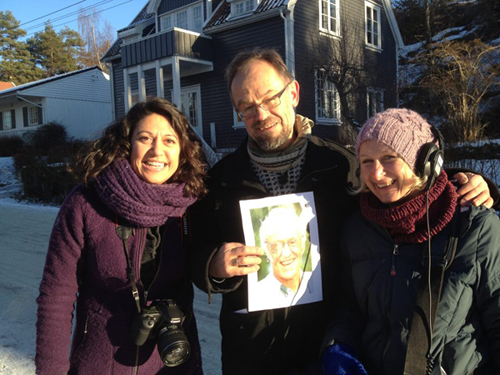 Tidlegare leiar i Østfold Mållag, Magne Aasbrenn, saman med programleiaren og innspelingsleiaren i den populære NRK-serien «Dialektriket» i januar 2013.