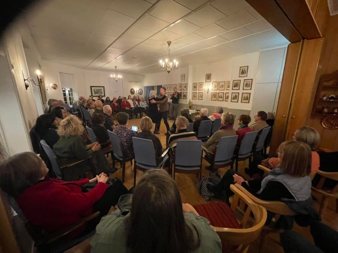 Heilt fullt på Matstova 15. november 2023 da BUL Sarpsborg og Sarpsborg Mållag arrangerte Finnskogen-aftan.